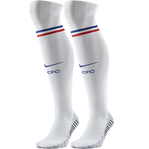 Het bijpassende voetbalbroekje is ook blauw van kleur en heeft aan de zijkanten dezelfde witte Nike strepen als het thuisshirt. Op de broekspijpen zijn de logo's van Chelsea en Nike te zien. De bijpassende voetbalsokken zijn wit van kleur en hebben aan de bovenkant een horizontale baan met daarboven drie witte strepen van Nike. Op de sokken staat ook de leeuw van het clublogo.